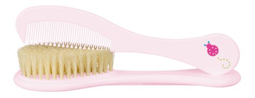 Zaoblené zuby hřebene a jemný přírodní vlas kartáče chrání citlivou pokožku dětské hlavičky
